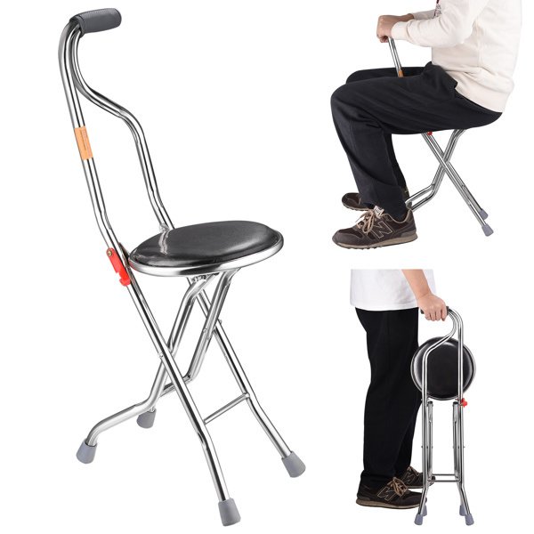 - Dual Functionality - This 2-in-1 Folding Cane Seat works as a seat to rest on when opened, and as a cane for mobility support when closed. Especially useful and ideal for the elderly, individuals with limited mobility or who need physical rehabilitation