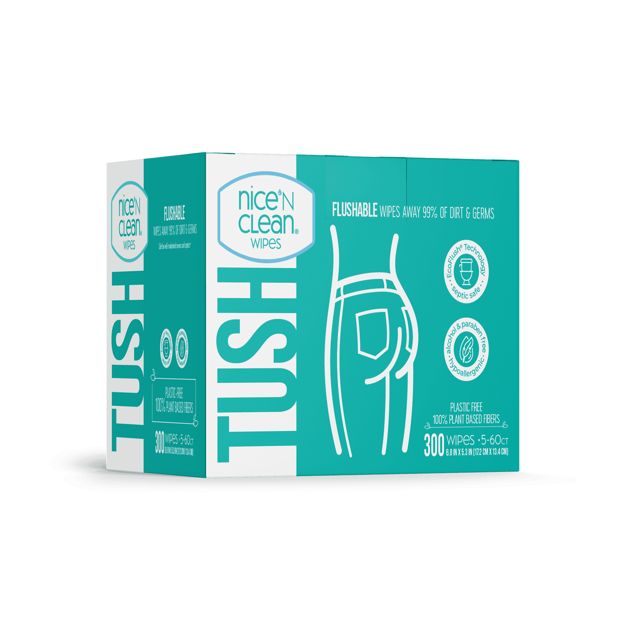 Flushable wipes with aloe and vitamin E Softer than regular toilet paper Septic-safe flushable wipes made with Eco Flush Technology and 100% plant-based fiber Wet wipes, flushable in well-maintained sewers and septic systems as a complement to toilet paper Nice 'N Clean Thick and Soft Flushable Wet Wipes are strong, soft wet wipes that can be easily flushed in any well-maintained septic system. Eco Flush technology allows us to make flushable wipes with 100% plant-based fiber that feels great and flushes easily. Our stylish packaging has a resealable Moisture Lock Lid to dispense and store wipes quickly and easily. Nice 'N Clean makes for great toddler wipes to clean up spills or help make potty training easier With this 5-pack of 60 wipes each, you can have a wipe within reach wherever you need one. Truly Flushable Wet Wipes the Perfect Toilet Paper Complement With Nice 'N Clean, you can finally use wet wipes that are softer than toilet paper, flushable, and clean better than toilet paper alone. Thick and Soft Flushable Wet Wipes’ 100% plant-based material and Eco Flush technology make for wipes that are easier to flush than ever. They’re great for everyday use and perfect for potty training These wipes are also proven to pass through sewer systems and are compatible with wastewater treatment plants. Pick up our flushable wet wipes and see what you’re missing out on today Resealable Moisture Lock Lid is Convenient and Discreet These septic-safe flushable wipes aren’t just high-quality and comfortable, they’re easy to use, too All 5 pouches in this 5-pack are equipped with an easy-open resealable dispenser with a Moisture Lock Lid. Anyone can easily open the lid, take a wipe and close it back again with a single hand. Nice 'N Clean flushable wipes work great alongside incontinence products as a simple, discreet package of adult wipes. Hypoallergenic, Alcohol-Free, with Aloe and Vitamin E Rough, scratchy wipes or toilet paper can cause discomfort, dehydrate your skin or even cause an allergic reaction Nice 'N Clean Thick and Soft Flushable Wet Wipes are completely hypoallergenic and alcohol-free. Each wipe is even infused with vitamin E and aloe Nice 'N Clean takes pride in producing quality wet wipes that anyone can use comfortably. Wet Wipes with a Commitment to Sustainability At Nice-Pak Products, Inc. (the maker of Nice 'N Clean), we are committed to caring for your family as well as the Earth. That’s why we design several of our products with gentle and sustainable materials. Nice 'N Clean Thick and Soft Flushable Wet Wipes are made from 100% sustainably-sourced plant-based fibers. They also contain no artificial chemical binders. These practices make the wipes easier to flush, more comfortable to use, and smarter for our planet. Now that’s a flush you can feel good about Ultra Thick and Soft Wet Wipes, Made with Care The Nice 'N Clean Purpose, Helping families stay healthy and well, one wipe at a time. Since founding our family-run company in 1957, we've been guided by a vision to provide gentle yet effective products that meet the specific needs of caring parents, their families, and the environment. When it comes to our loved ones, we only use the gentlest and highest quality pre-moistened wipes. We know that you want the same for yours. Safe for well-maintained sewers and septic. Flush only one wipe at a time.