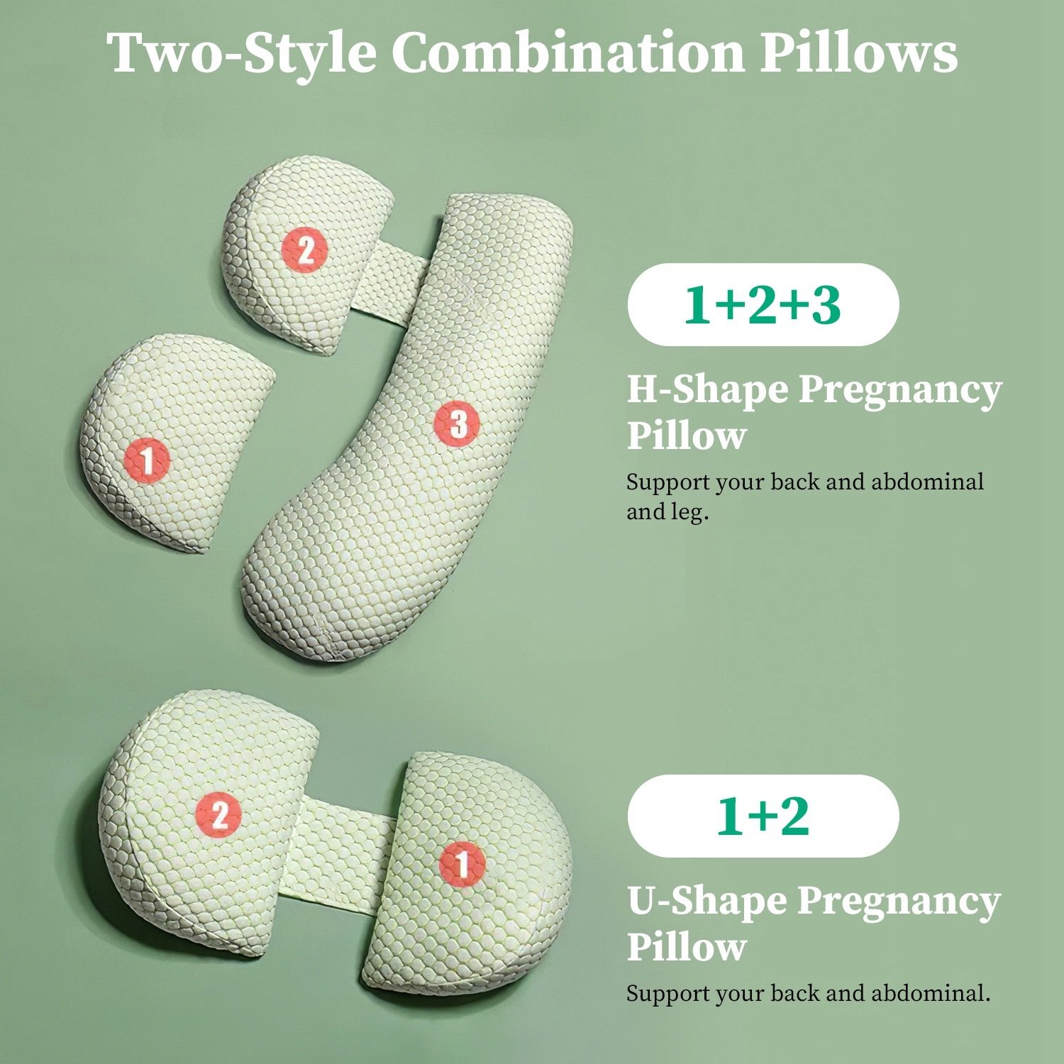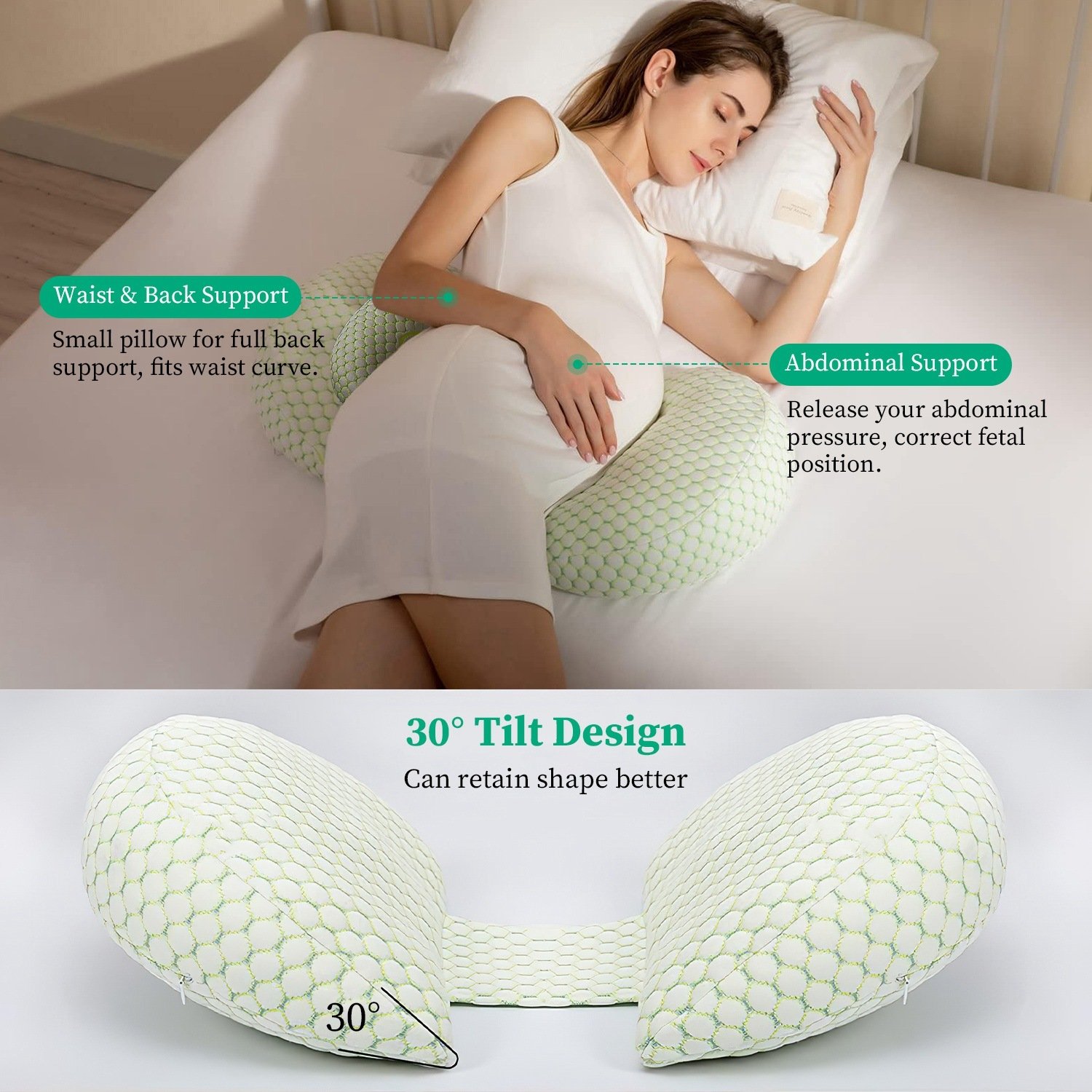 2.This side sleeping support pillow will help you stay on your side with two connected pillows, providing the perfect support for your back and baby bump while side sleeping and helping you fall asleep more easily.