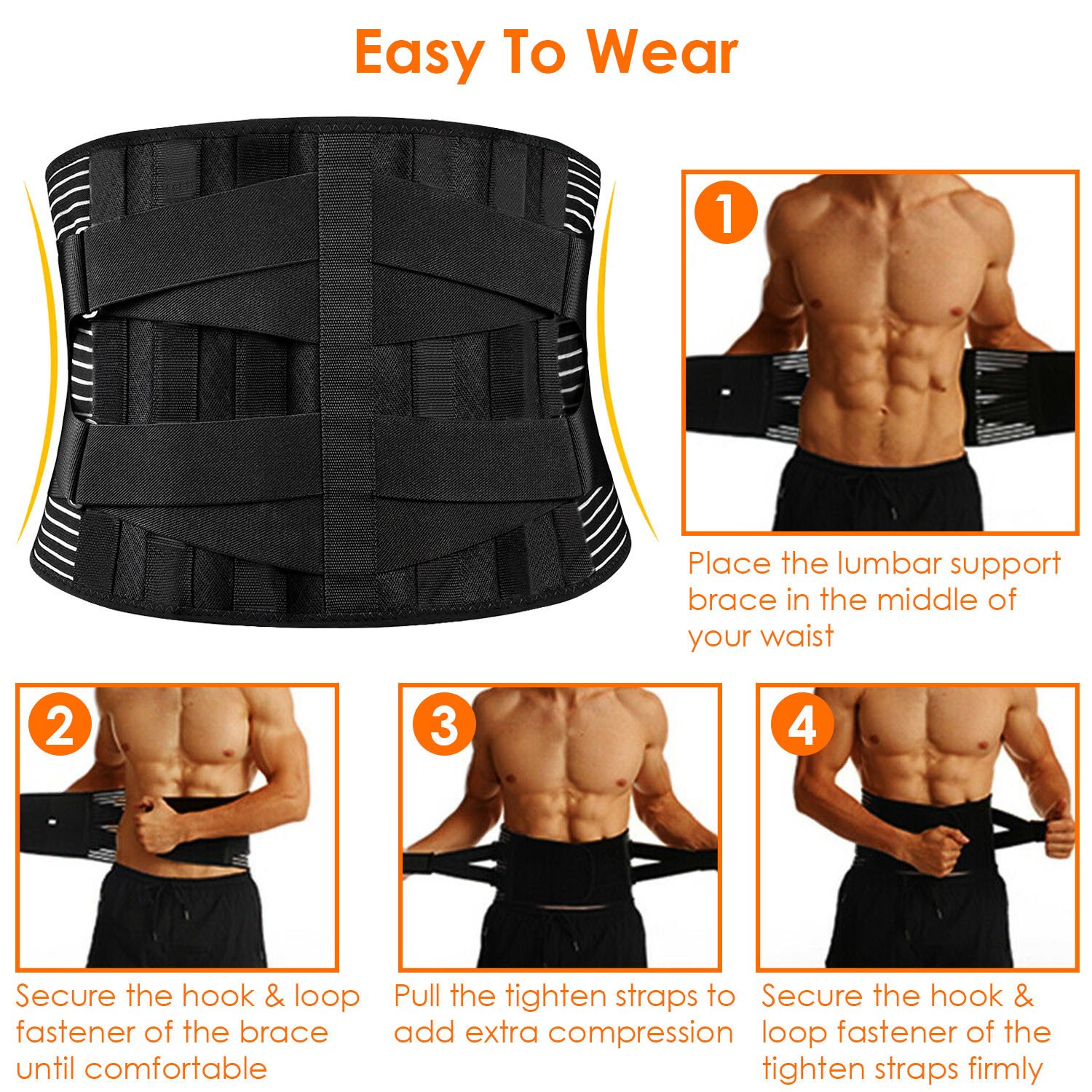 *Strong Supports*:Supported with 4 metal stays at back and 2 steel springs at the waist side; the lumber support brace can give your back strong and flexible support; preventing your waist from undue using and achieving spine decompression.