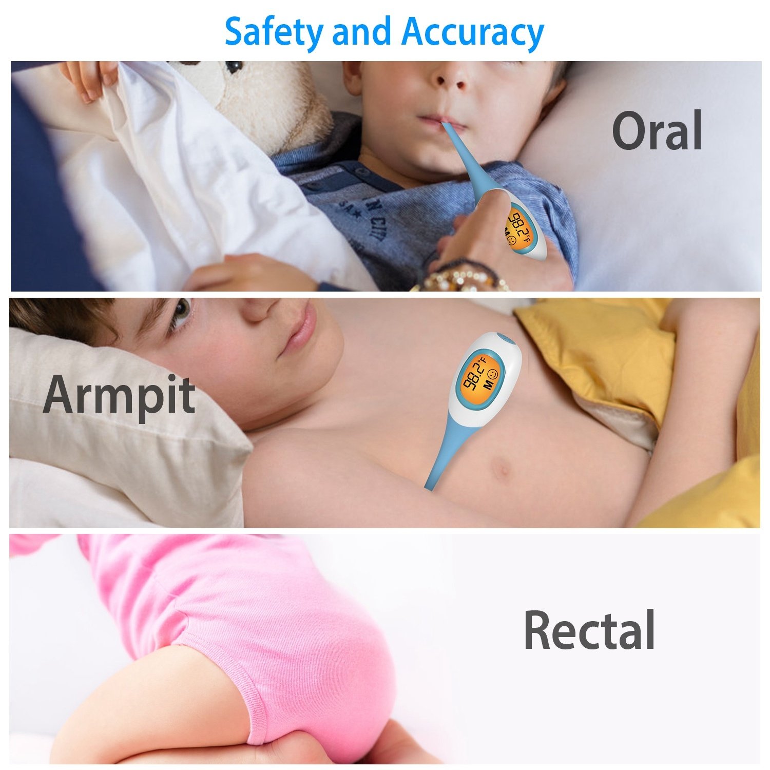 *[Three Measurement Modes]- The thermometer takes the temperature in different ways*:ORAL,RECTAL and UNDER THE ARM. Its soft silicone tip design make it possible to use the thermometer in any situation for adults/kids.
